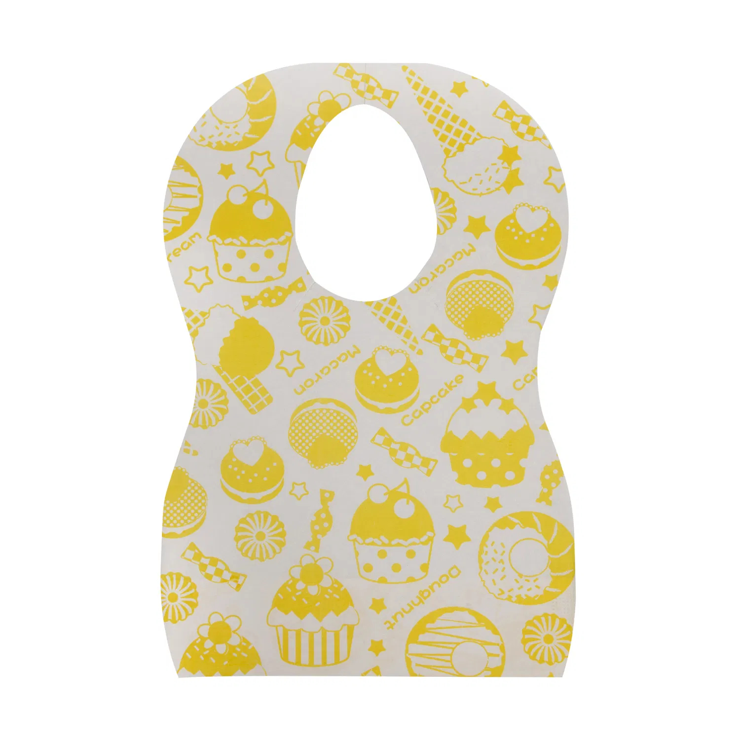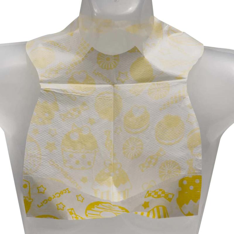 Delantal desechable para bebé con bolsillo de papel, fabricado en material PE, impermeable, con capacidad para imprimir múltiples diseños.