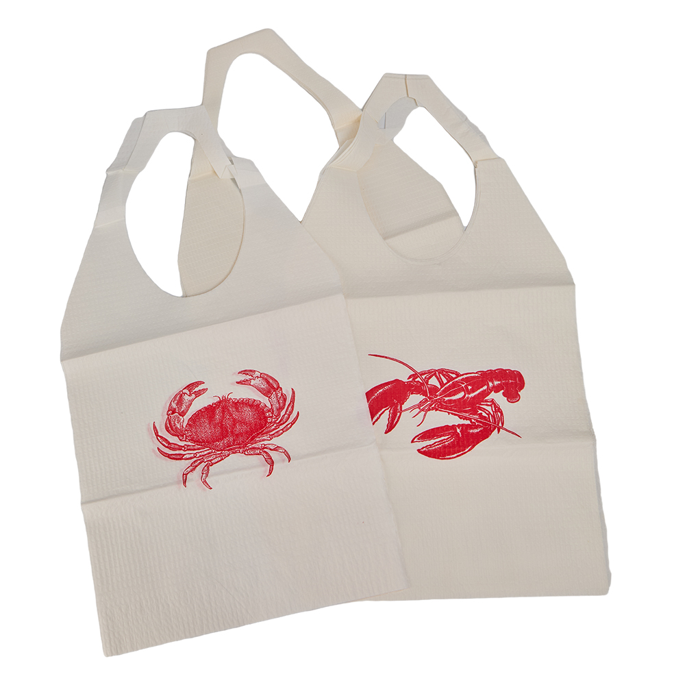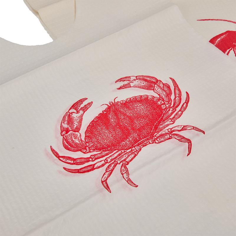Impresión: opciones de impresión de alta calidad de 1 a 6 colores de nuestro fabricante de delantales con impresión de 1 a 6 colores para producir diseños vívidos de delantales de papel con diseño de langosta y cangrejo.