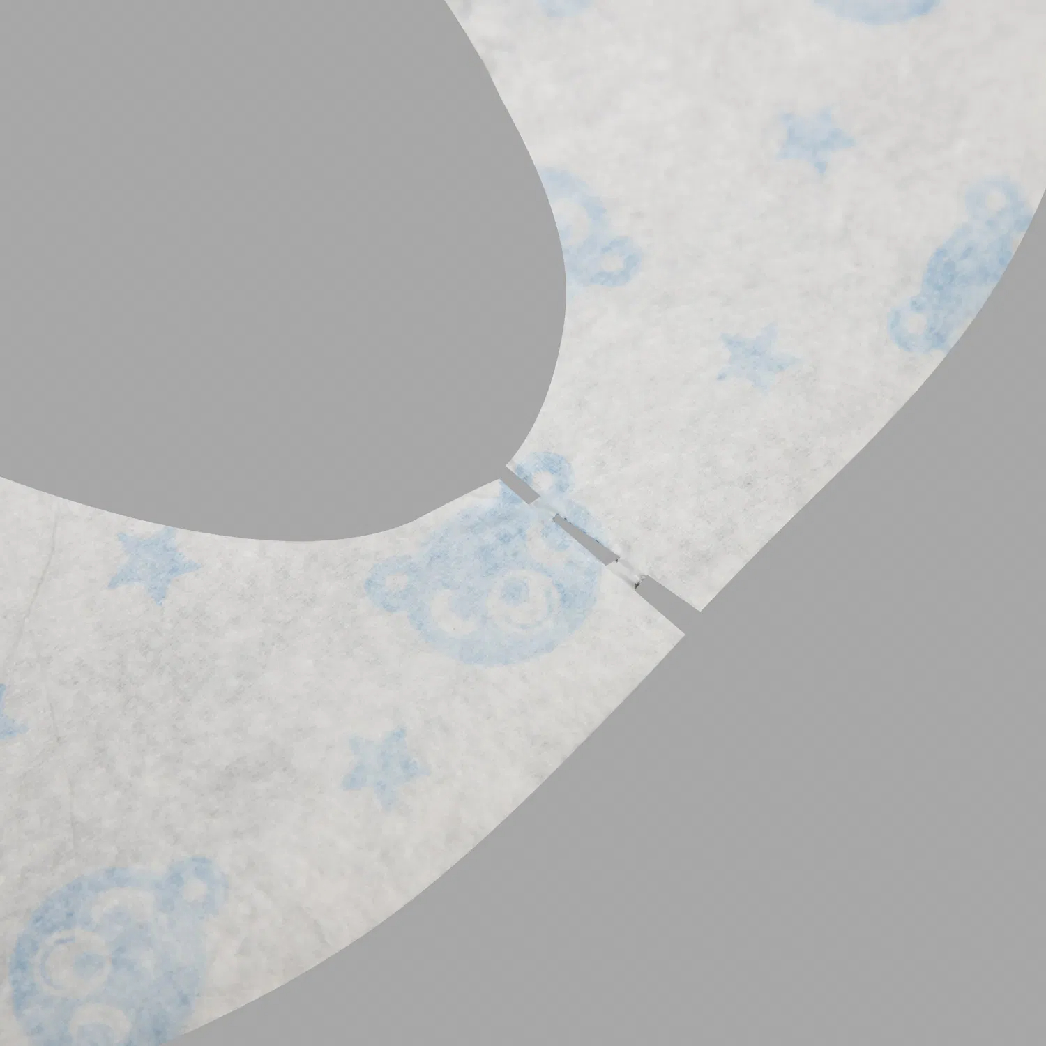 Protección impermeable: la superficie laminada con película de PE evita la penetración de líquidos, lo cual es esencial para los baberos desechables impermeables para bebés.