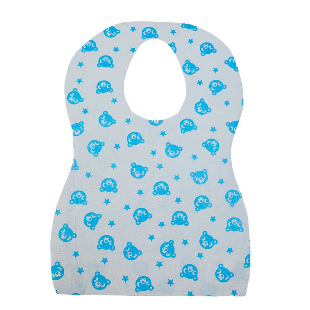 Confección con laminado de papel y PE: Los baberos laminados de papel y PE combinan suavidad con resistencia a los líquidos para mayor comodidad y protección.