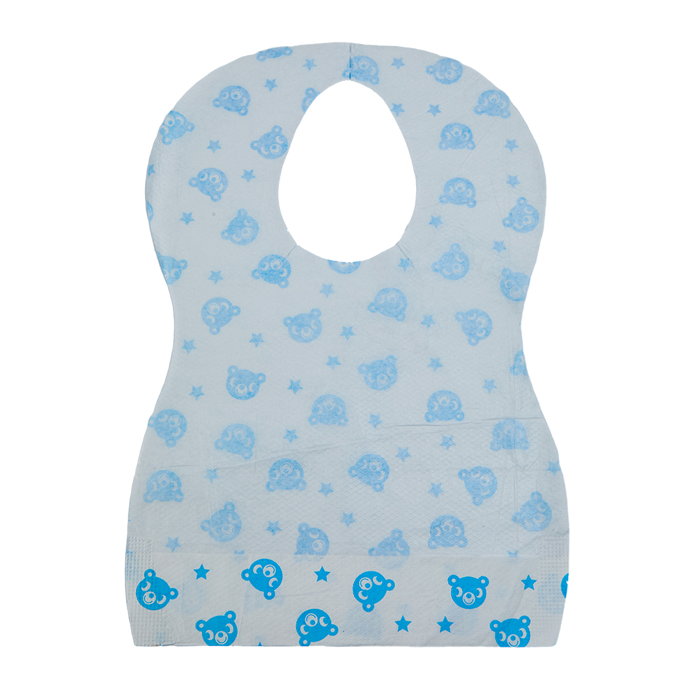 A: Nuestros baberos desechables para alimentación son baberos laminados de papel + PE; el papel ofrece suavidad, mientras que la película de PE crea una barrera confiable, impermeable y resistente al aceite de un solo uso.