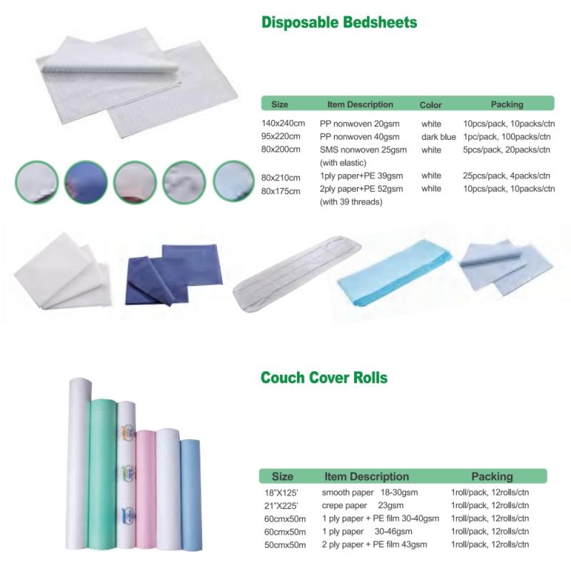Rollos de sábanas médicas para camillas: Experimente una calidad superior con nuestros rollos de sábanas médicas de papel y película de PE para camillas. Ideales para uso clínico, estos rollos de papel desechables garantizan un entorno seguro y estéril para los pacientes durante los exámenes.