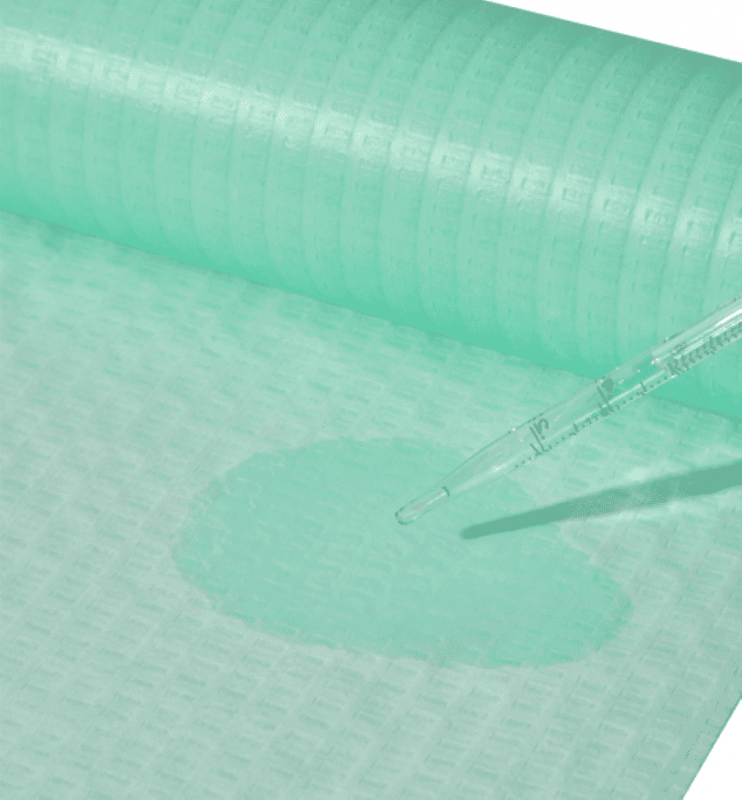 Tejido no tejido de PP+PE impermeable y resistente al desgarro, que garantiza la integridad estructural durante las exploraciones a pacientes y los procedimientos menores.