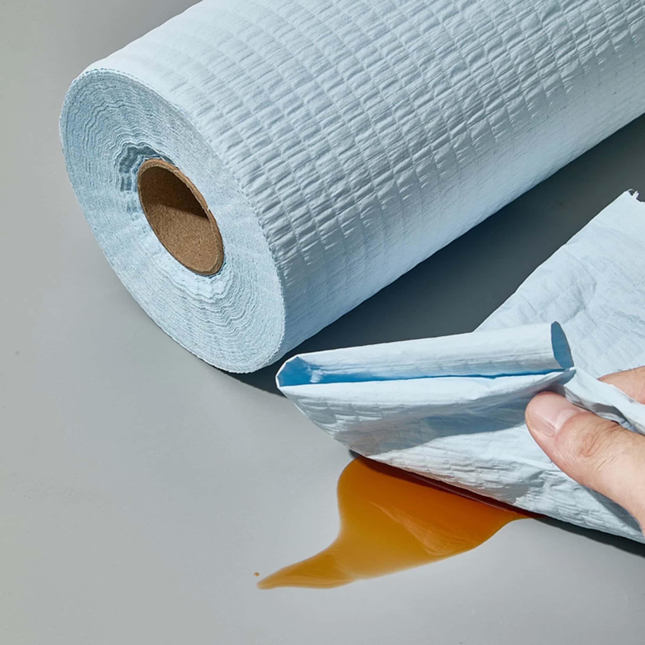Absorción: su estructura de 4 capas de alta capacidad absorbe rápidamente los líquidos para el control de derrames y la preparación de superficies; una ventaja fundamental del rollo de toallas de papel absorbentes estériles de 4 capas reforzadas con malla.