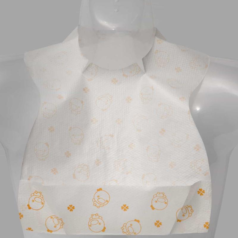 Fabricado por Hefei Telijie Sanitary Material Co., Ltd., este babero desechable para niños está hecho de papel de alta calidad y película de PE, combinando suavidad e impermeabilidad. Con un tamaño de 36 x 66 + 10 cm (36 cm de ancho, 66 cm de largo y un bolsillo grande de 10 cm), el bolsillo incorporado atrapa eficazmente migas de comida, sopa y otros residuos, manteniendo la ropa de tu bebé limpia y ordenada durante las comidas, meriendas o mientras pinta. Está disponible en varios colores vibrantes como blanco, azul, verde, rosa y amarillo, con estampados adorables, ideal para niños pequeños de todas las edades. Ligero y fácil de transportar, es un artículo esencial para el día a día de los bebés en casa, restaurantes o salidas.